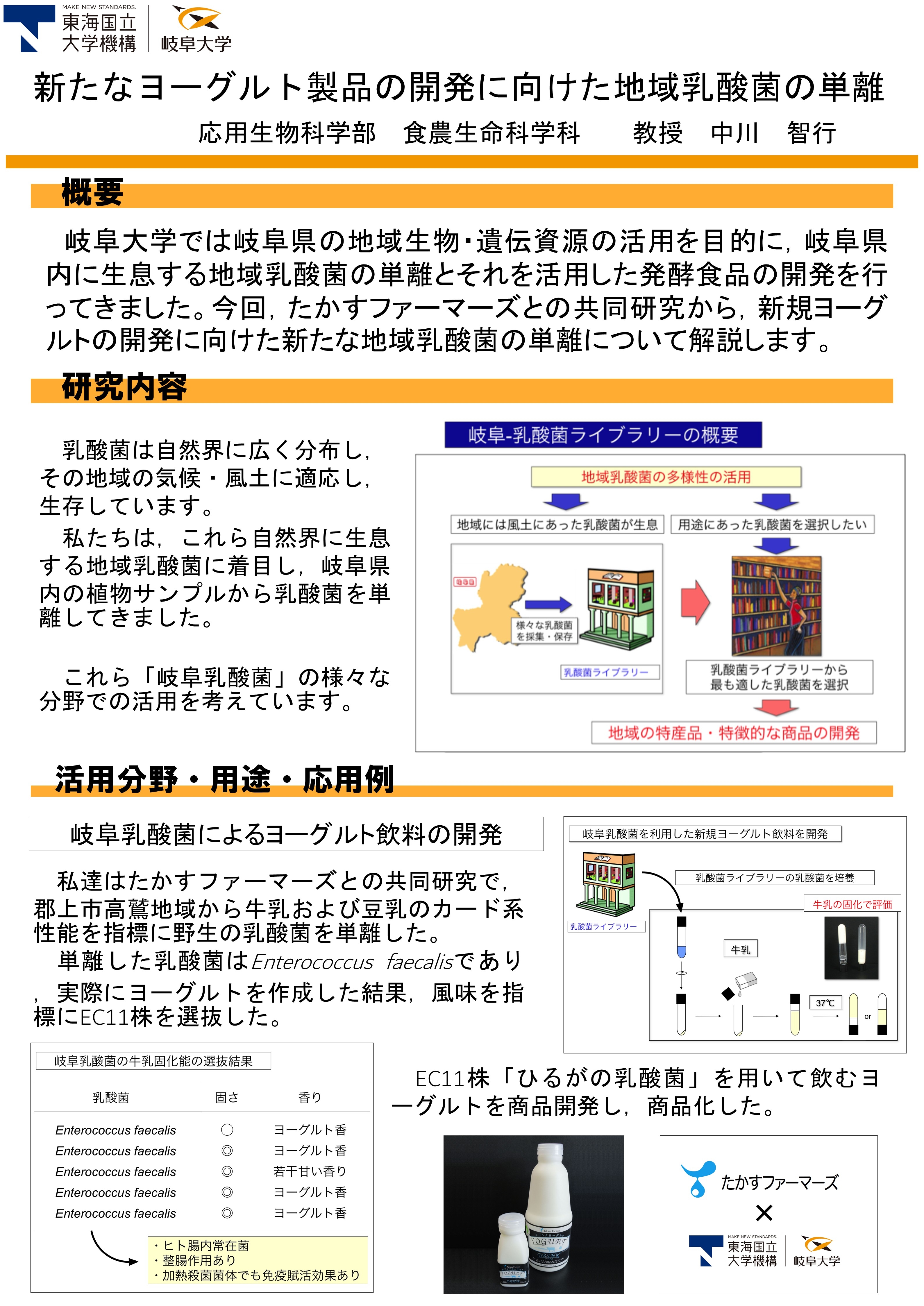 今回,たかすファーマーズとの共同研究から,新規ヨーグルトの開発に向けた新たな地域乳酸菌の単離について解説します。